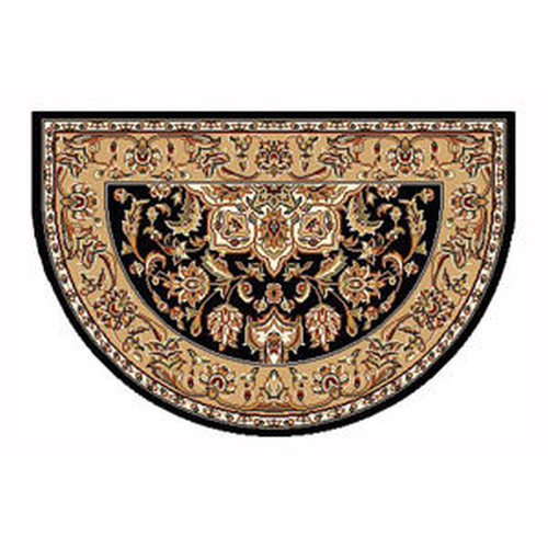 - 46x31 Half Round Kashan Hearth Rug - Black/Beige