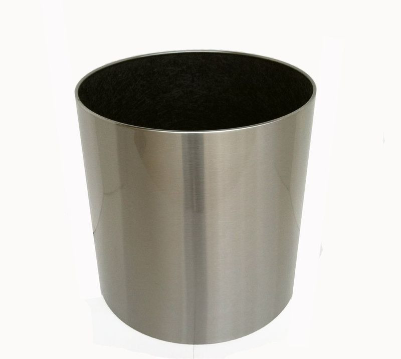 Brushed stainless steel planter, well suited for interior design as well as garden decor. Sharp, modern design with an easy-to-clean exterior and a waterproof lined interior.
